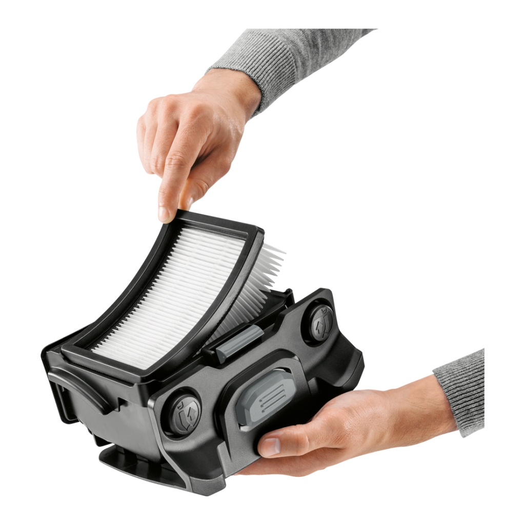 Herausragende Filterreinigung, starke Impuls-Luftstöße befördern per Knopfdruck den Schmutz aus dem Filter in den Behälter, die komplette Saugleistung ist schnell wiederhergestellt