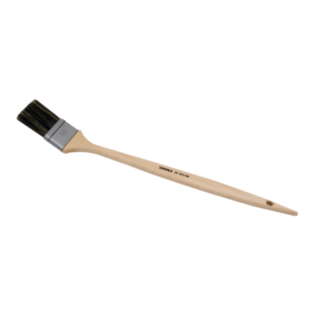 Typ: Heizkörperpinsel Besatzmaterial: Mix aus reinen Schweineborsten aus China und hochwertigen Kunstfasern Besatzfarbe dunkelgrau Stiel: Buche natur Zwinge: Nylonzwinge (PA) silbern